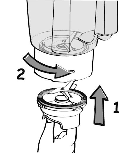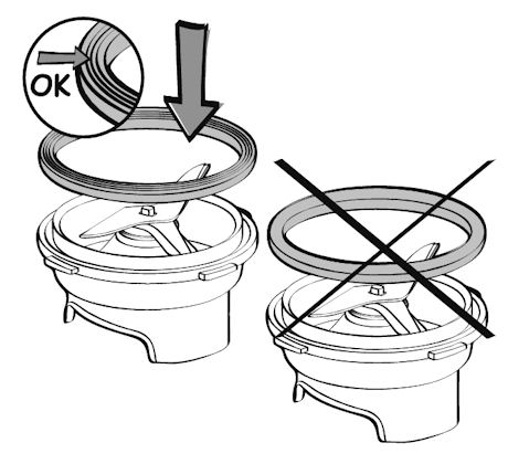 • Verificare che il giunto sia correttamente posizionato sul gruppo lama, le 3 pieghe del giunto devono essere visibili una volta il giunto posizionato. Se è posizionato nell'altro senso non si potrà bloccare il gruppo lama sulla ciotola.